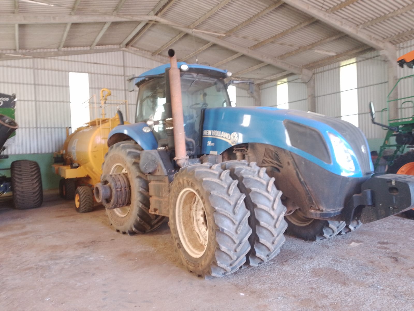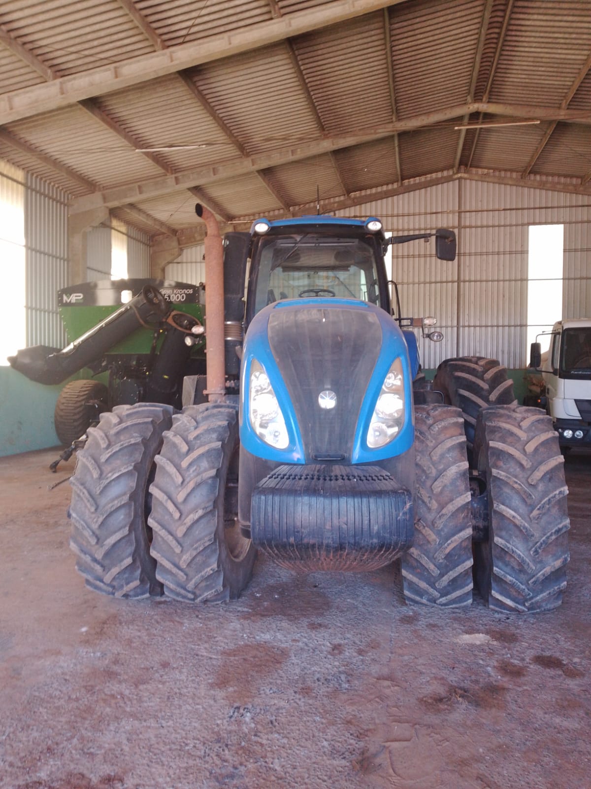 Trator New Holland T8 385, ano 2011, Cabinado, 340cv, torque máximo 374cv a 1400rpm, motor FTP Cursor, 6 cilindros, Transmissão automática Full power shift 18X4, GPS, Piloto, Rodado Duplo Dianteiro 480/70R34 e Duplo Traseiro 710/70R42 Radiais, TDP 1000RPM, 03 valvulas de retorno, 4 VCR e Loud Sens, Isobus, vazão 279 l/min, monitor Intelli View IV, acionamento dos braços hidráulicos e TDP nos dois paralamas trazeiros. Trator estava com conjunto Plantadeira JD CCS 2126 Vacumeter, ano 2013, Pedida Plantadeira R$ 350.000,00 - Condição: à Vista ou Via Banco